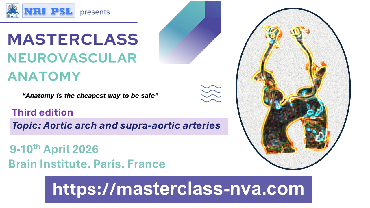 Nous organisons les 9 et 10 avril 2026 la 3ème MasterClasse d’Anatomie Neurovasculaire à l’Institut du Cerveau, dans l’enceinte de la Pitié-Salpêtrière, à Paris.